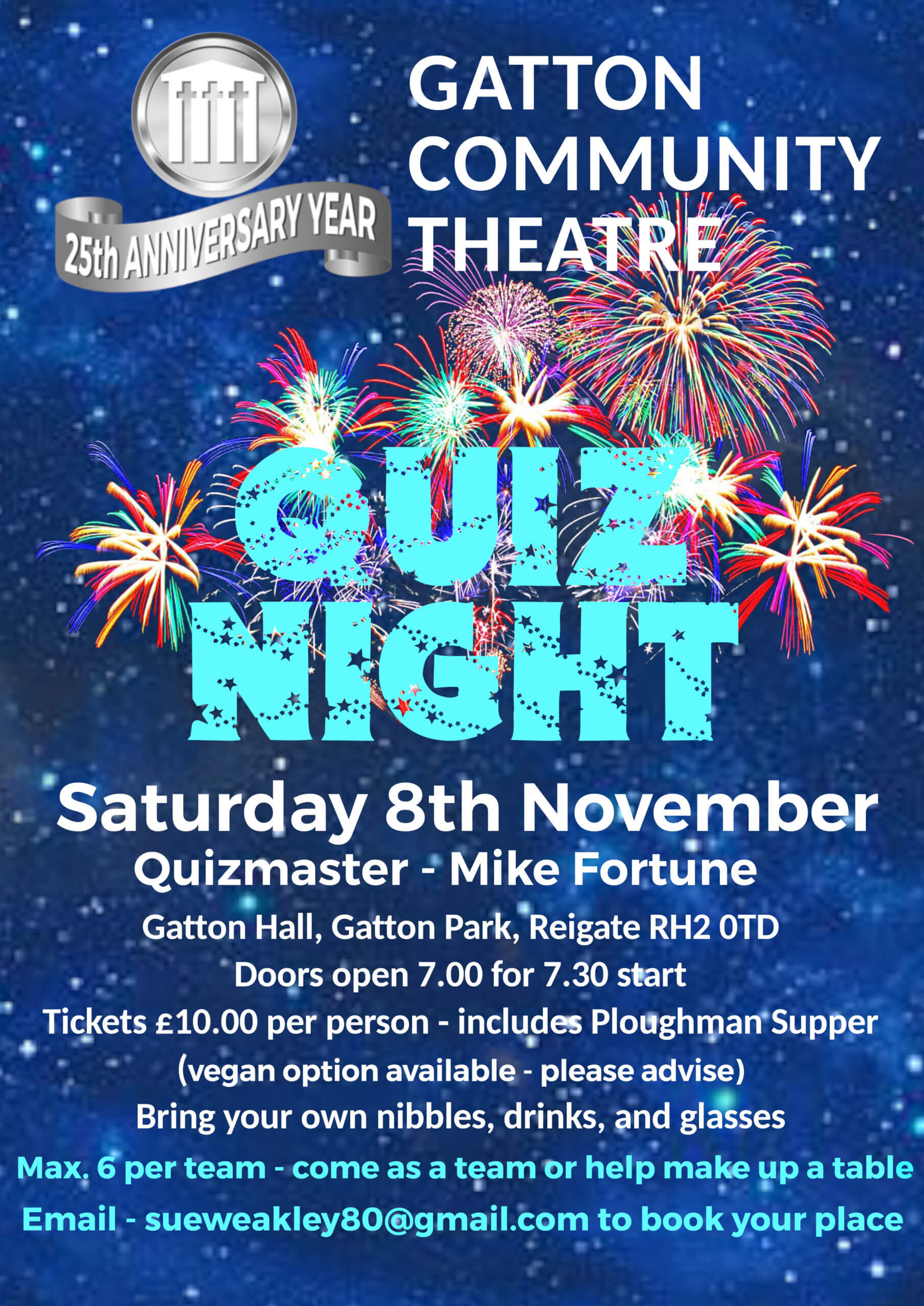Saturday 8th November 7.30pm – Quiz Night at Gatton Hall welcoming back quizmaster Mike Fortune raising funds for our Nativity production costs. Ticket details below: