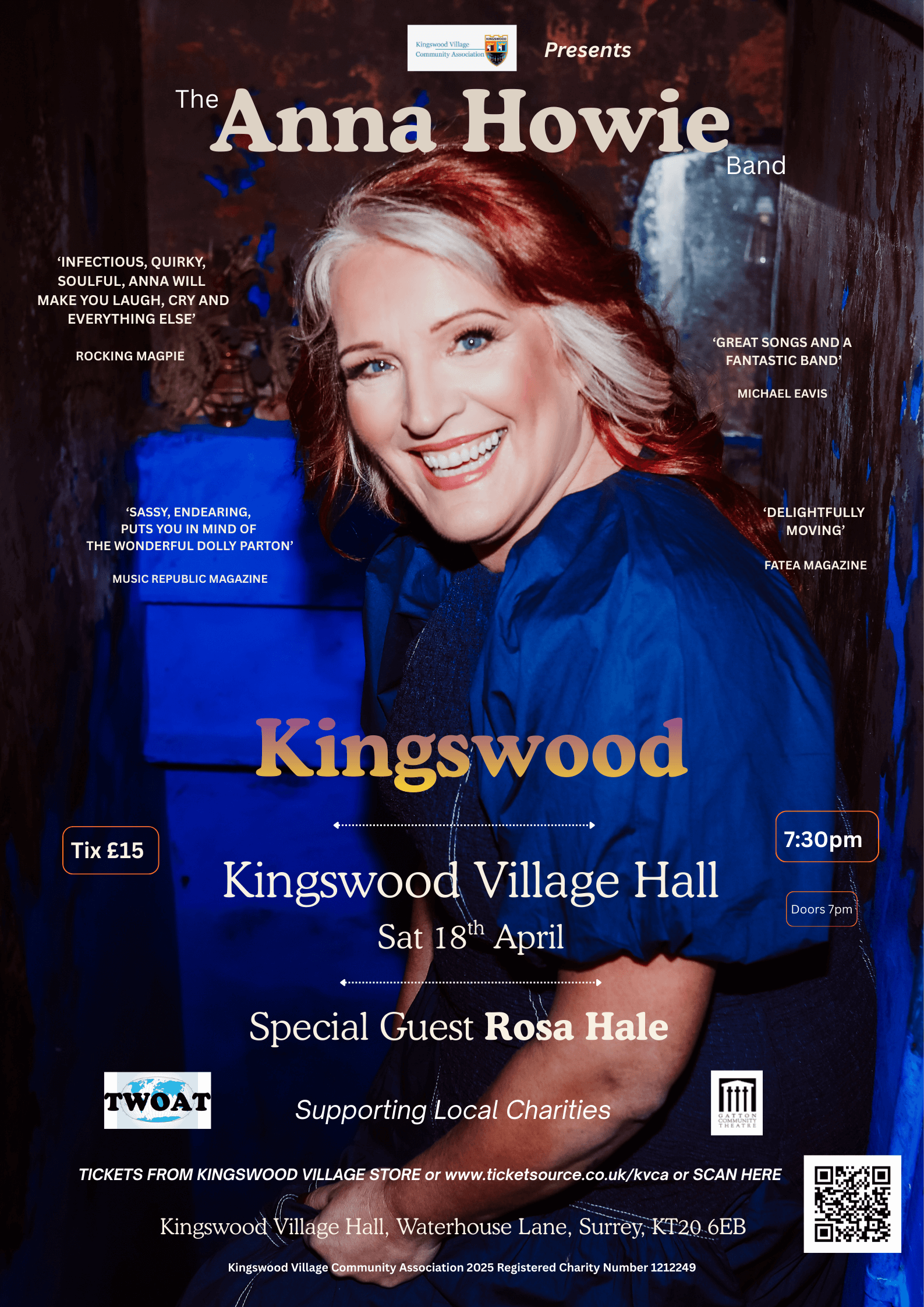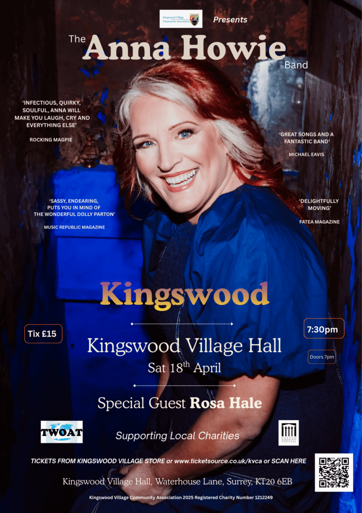 In the meantime do come along and join us for a fabulous evening of music, song and laughter with Anna Howie and band supporting Gatton Community Theatre and local Tadworth charity TWOAT.